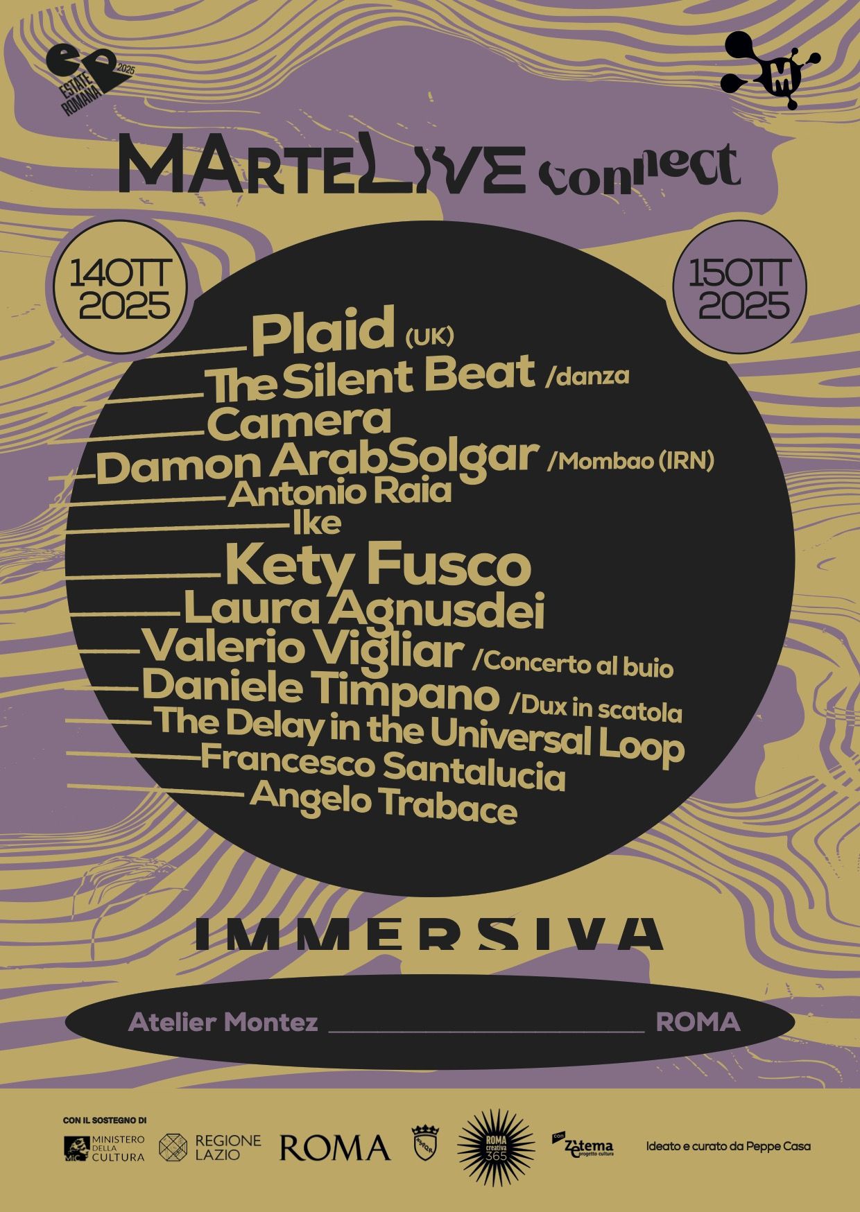 Le espressioni musicali — elettroniche, acustiche, oniriche — attraversano lo spazio come onde che si propagano dal centro verso i corpi e le pareti, trasformando la sala in un organismo.